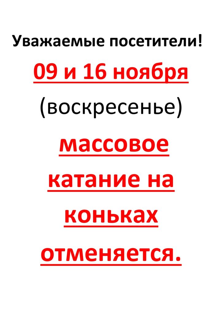 09 и 16 ноября(воскресенье) массовое катание на коньках отменяется