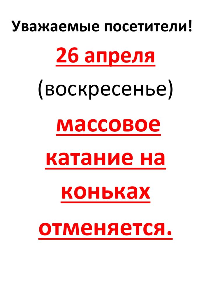 26 апреля(воскресенье) массовое катание на коньках отменяется