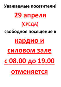 29 апреля (среда) свободное посещение кардио и силового зала отменяется