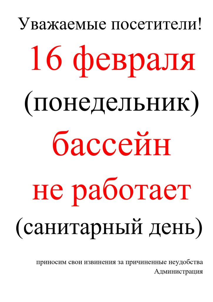 Санитарный день в бассейне 16.02